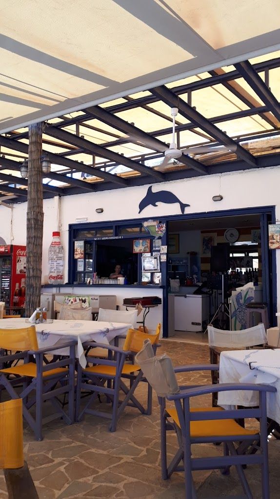 Centraal op het strand , onder hetzelfde dak van The Lions treffen wij het restaurant DOLPHINS aan. Onder het toeziend oog van Dimitri kan je er zowel van een koffie, een biertje of een glasje koele wijn genieten van de typische Griekse keuken. Vanaf juni tot midden oktober is er vanaf de namiddag Life Music door het fantastische duo ACROBATES and FRIEND.